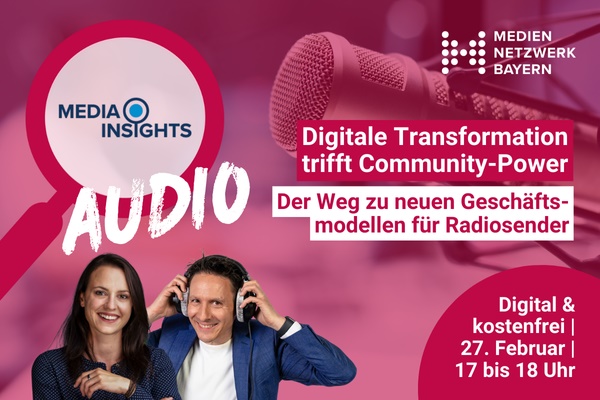 Schwankende Werbeerlöse und digitale Umbrüche – die Radiobranche steht vor großen Herausforderungen. Wie sichern Communities die Zukunft? Diskutiere mit Marie Ebert (HIT RADIO FFH) und Roland Lehmann (Radio Teddy) am 27.2. ab 17 Uhr bei Media Insights des MedienNetzwerk Bayern. Kostenfrei anmelden!