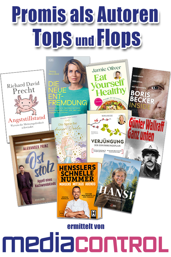 Jede Woche erscheint irgendein Promi-Buch, meist promotet durch Interviews. Wer es in die ZDF-Sendung von Markus Lanz schafft, hat die höchsten Aussichten auf einen Bestseller. MEDIA CONTROL zählt jeden Buchverkauf und hat hier die Tops & Flops