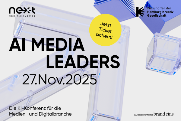 Am 27. November trifft sich die Medien- und Digitalbranche zur AI Media Leaders Konferenz im Mojo Club Hamburg. Über 40 Speaker*innen zeigen, wie Künstliche Intelligenz neue Chancen eröffnet, Kooperationen stärkt und die Zukunft der Branche mitgestaltet. Mehr erfahren