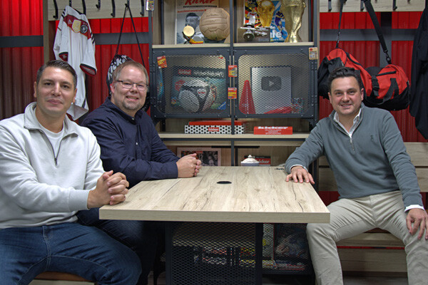 “Wir hatten immer eine gesunde Demut in unserer DNA, aber jetzt treten wir selbstbewusster auf”, sagt Lukas Ringer (rechts) mit Blick auf die 105-jährige Geschichte des “Kicker” im turi2-Podcast. Zusammen mit Taygun Karakas (links) leitet er den Sales-Bereich beim Sportmagazin und hat es sich zur Aufgabe gemacht, “stärker über das zu sprechen, was unsere Redaktion tagtäglich leistet”. Für viele Fußballfans ist der “Kicker” Pflichtlektüre, kann inzwischen aber weit mehr als nur Männer-Fußball. “Unser Ziel ist, das, was der ‘Kicker’ im Fußball geschafft hat, auch in anderen Sportarten umzusetzen”, erklärt Karakas im Gespräch mit turi2-Redakteur Björn Czieslik (Mitte). Im Podcast erzählen Ringer und Karakas auch, warum Sport in einer Welt voller Krisen ein sicheres Werbeumfeld darstellt und warum es den “Kicker” auch in 105 Jahren noch geben wird. Der Podcast ist Auftakt unserer Themenwoche Sport.