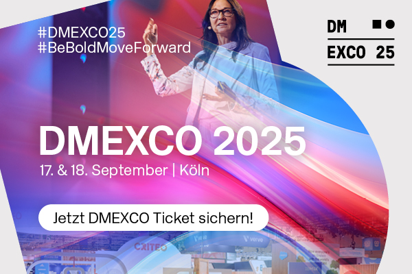 DMEXCO 2025: Big Brands. Big Business. Die DMEXCO 2025 vereint die Digitalbranche: Über 900 Speaker:innen, 400+ Sessions und 10 Summits warten auf dich. Erlebe Highlights wie Tim Rottländer (IQ Digital), Jennifer Treiber-Ruckenbrod (Mini) und Dora Osinde (Ogilvy Deutschland). In der Expo dabei: Netflix, Adobe, IBM iX, Visiorize, Insider und viele mehr. Jetzt Ticket sichern!